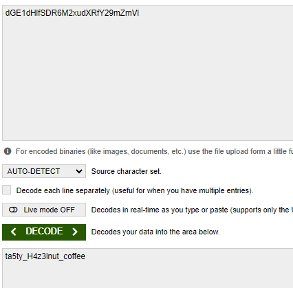 해당 문자열이 영문자와 숫자로 이루어져있으니 가장 만만한 base64부터 복호화를 시도해보면