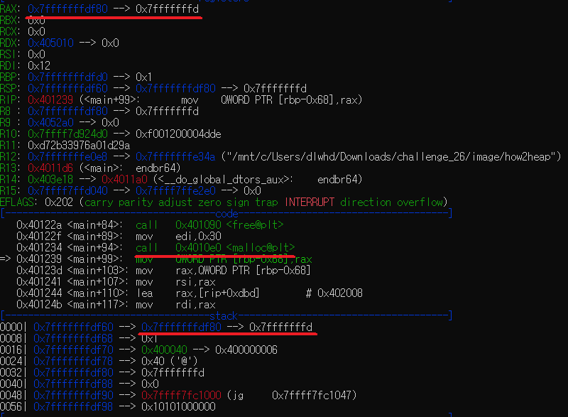 tcache에 저장되어 있던 영역이 그대로 RAX에 전달되어 할당되고